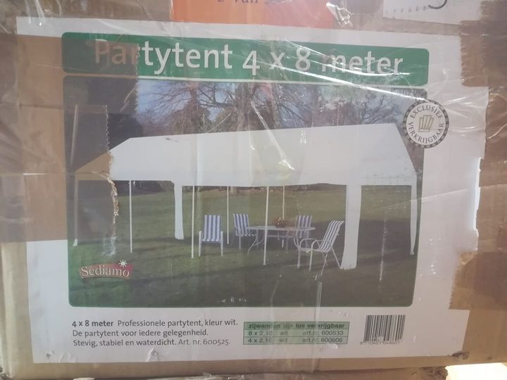 Partytent 4×8 meter in goede staat met zijstukken.